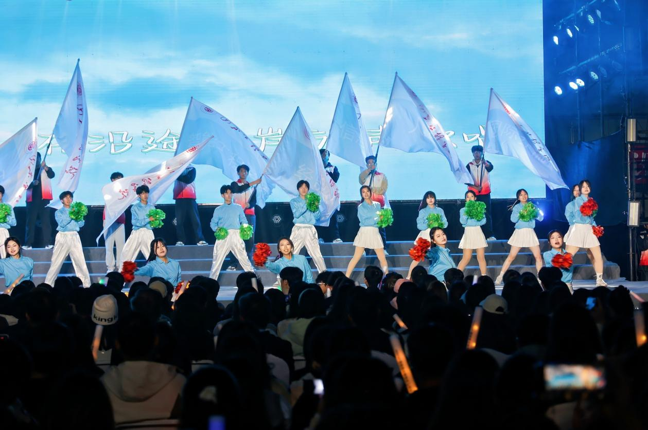 第二篇章以“爱校 青春逐梦”为主题,展示丰富的校园精神文化内涵。学校新生辅导员代表、外籍教师代表、2025年“校园十佳歌手”代表、学校社团ST街舞社轮番登台献唱《再次重逢的世界》《女孩》《爱》《相亲相爱》,展示了丰富的校园文化生活;由山东青年政治学院舞蹈学院带来的群舞《蘭叙》,鼓励学生们逆向而生,无惧风雨;我校教师霍伟义及其团队精心打造的原创小品《庆功酒》,通过一则抗战故事,带领学生们重温那段用生命谱写的壮烈岁月,让学生们在伟大抗战精神中汲取前进力量。