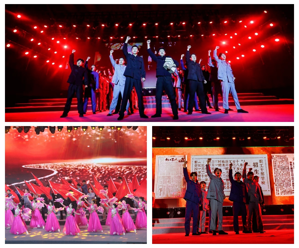 第一篇章以“知校 红色记忆”为主题,由我校艺术学院音乐教育专业学生带来的原创舞台剧,以青春视角重构红色校史篇章,将那段充满理想与热血的岁月鲜活地呈现在师生面前。