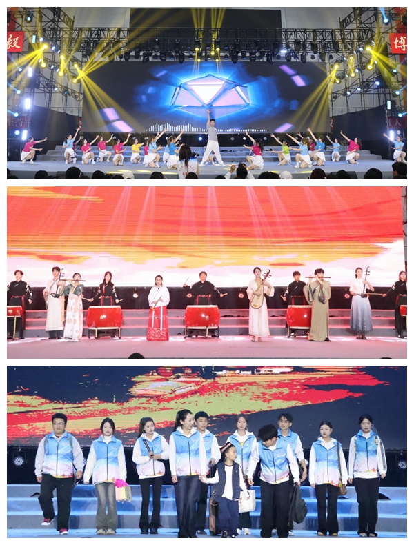 第四篇章以“兴校 铸就辉煌”为主题。各学院少数民族学生代表共同演绎《中华民族一家亲 同心共筑中国梦》,她们身着民族特色服饰,以舒展的舞姿勾勒出民族团结的美好图景;学校“琴声书韵曲艺社”带来的山东琴书《孟母教子》,充分展现了山东琴书作为国家级非物质文化遗产的深厚底蕴与时代活力;退休教师代表、学校历年教学比赛获奖教师代表与学校“匠韵之声”合唱团共同演唱《我的深情为你守候》,既是学校“因党而生、为国而建、向党而兴”历史和时代责任的传承,也是山管全体教职工对教育事业的坚守,是学校弘扬教育家精神的具体实践。