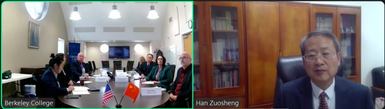11月3日北京时间21时,山东管理学院与美国伯克利学院举行线上合作会议。山东管理学院校长韩作生、美国伯克利学院校长Dr. Diane Recinos分别率领双方核心管理团队及骨干教师代表出席。