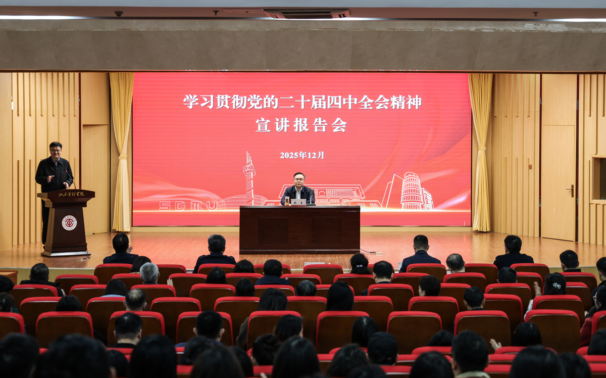 12月10日下午,山东管理学院在图书馆报告厅举行学习贯彻党的二十届四中全会精神首场宣讲报告会。山东高校学习贯彻党的二十届四中全会精神宣讲团成员、校党委书记魏勇作专题宣讲,并部署学校学习宣传贯彻落实工作。党委副书记孙琪主持宣讲报告会。