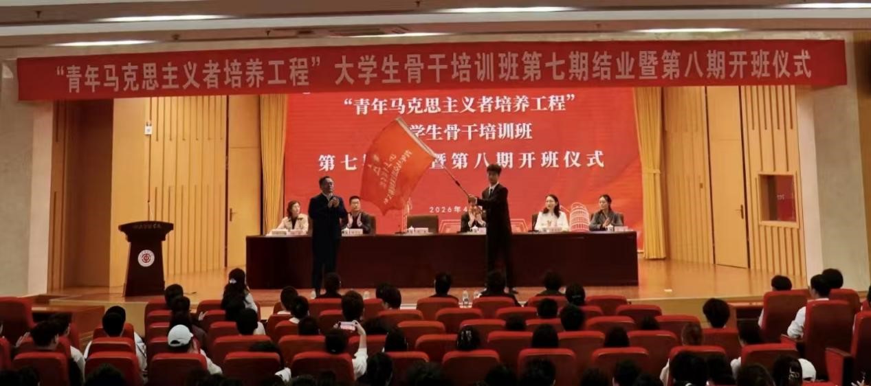开班仪式上,魏勇为第八期“青马工程”培训班授旗。