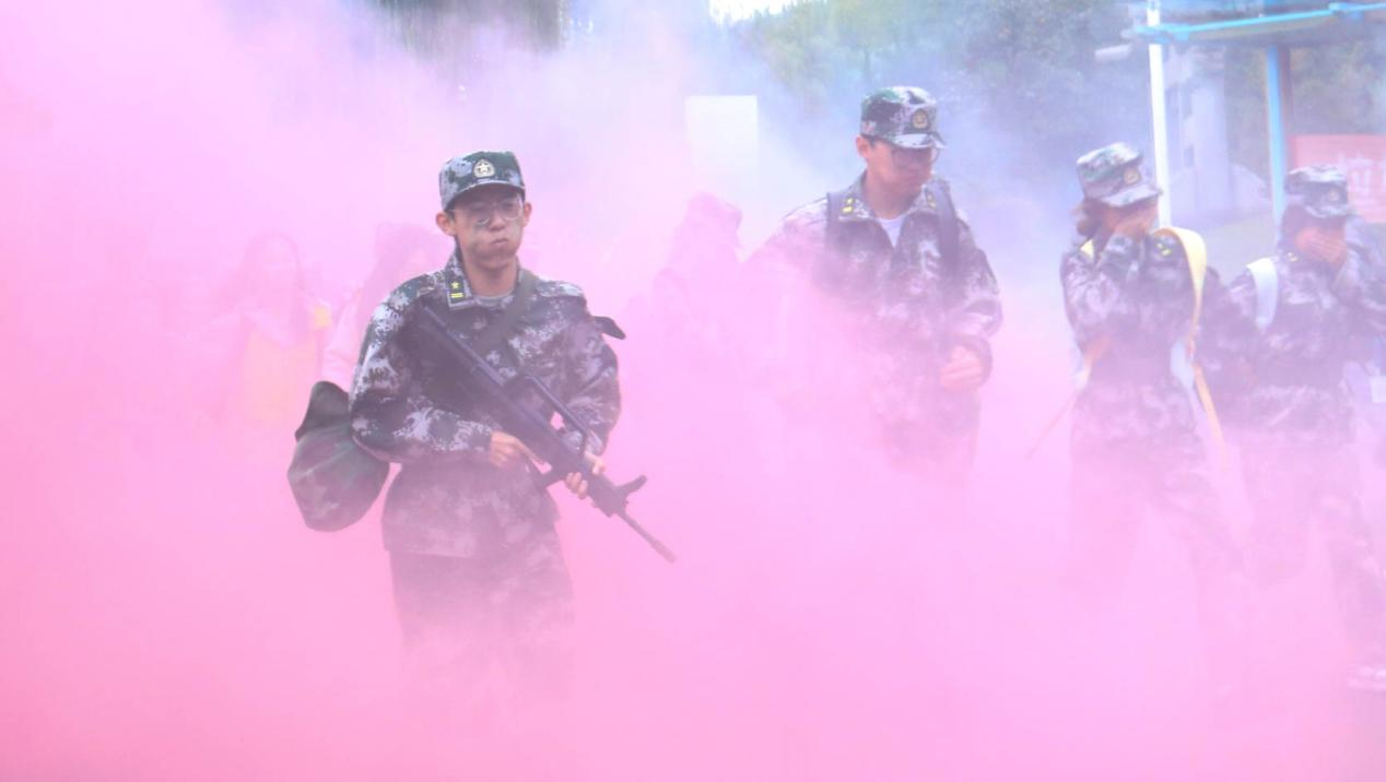 行军拉练全程精心设计实战化项目,让新生在行走中提升军事素养。急行军环节,新生们在规定时间内保持紧凑队形快速前进,有效锻炼了反应能力与团队协作力;战术演练环节,教官现场示范战术动作,沉浸式感受武装反制突袭场景;战场医疗救护教学环节,新生们进行头部、手臂等部位的快速包扎,增强了应急救护意识与能力。