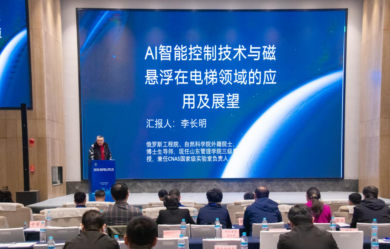 俄罗斯工程院外籍院士、我校智能工程学院李长明教授以《AI智能控制技术与磁悬浮在电梯领域的应用及展望》为题作前沿技术报告,重点介绍了AI技术在电梯制造产业中的落地应用及磁悬浮技术的未来展望。