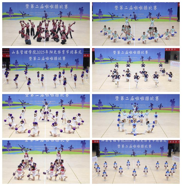 第二届啦啦操大赛作为本届阳光体育节的收官活动,来自各二级学院的8支参赛队伍为现场的师生献上了一场精彩的视觉盛宴。工商学院、人文学院、经贸学院参赛队伍分别获得冠、亚、季军。