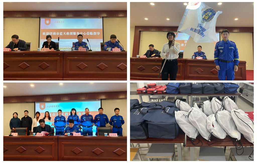 王义辉详细介绍了济南市蓝天救援队发展历程与核心能力,并表示济南市蓝天救援队已参与了涵盖地震、洪涝、山地搜救等多领域救援行动千余次,拥有专业的救援装备与实战经验,期待与学校在课程开发、实训指导等方面的深度合作,让更多青年学子掌握应急技能,成为社会安全的守护者。
