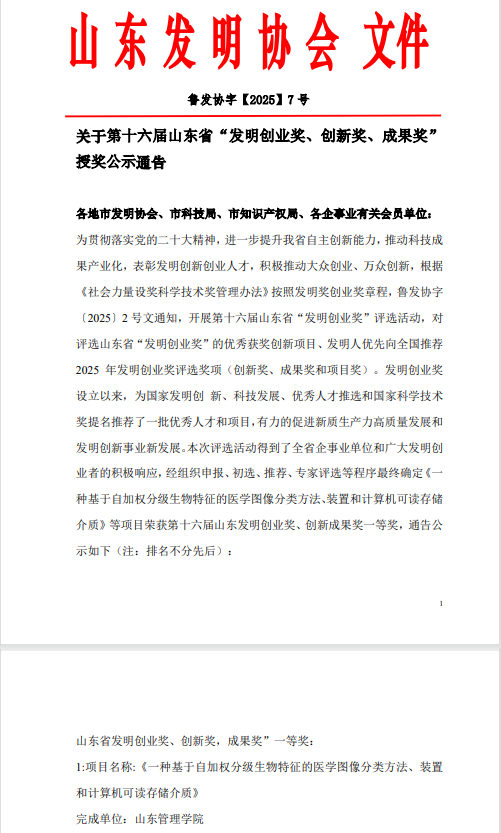 上一条:我校获第八届中国(上海)国际发明创新展览会奖三项 下一条:山东管理学院荣获2025年山东计算机党建与科技创新优秀成果奖一等奖