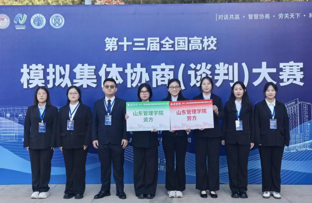 11月1日至2日,由中国人力资源开发研究会劳动关系分会主办、北京物资学院承办的第十三届全国高校模拟集体协商(谈判)大赛举行。我校劳动关系学院组织两支代表队参赛,经过两天的激烈角逐,资方代表队获全国一等奖、劳方代表队获全国二等奖,学生李娅淑、肖凤婷、韩浩然获最佳谈判员一等奖,指导教师赵抗抗、窦博如获优秀指导教师一等奖,山东管理学院获最佳组织奖。